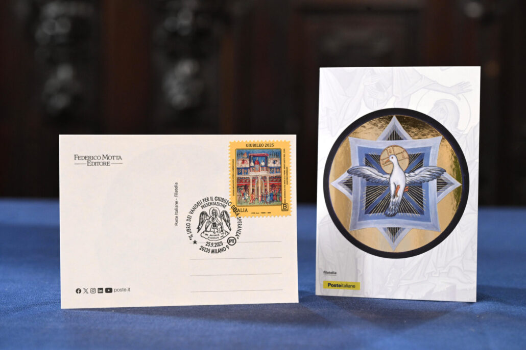 Lo speciale annullo filatelico realizzato ad hoc per il volume “Il Libro dei Vangeli” di Federico Motta Editore